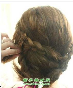 步骤三:编织到发尾,用发夹固定。